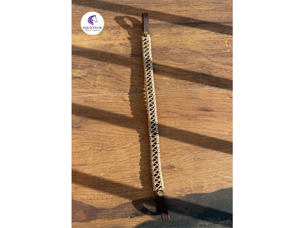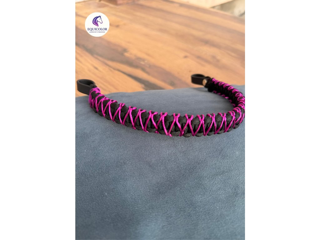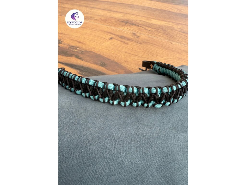 Čelenka pletená z Paracordu s biothanovými uškami. Dozdobená saténovou šnúrou . Použité sú šrobovací nit.