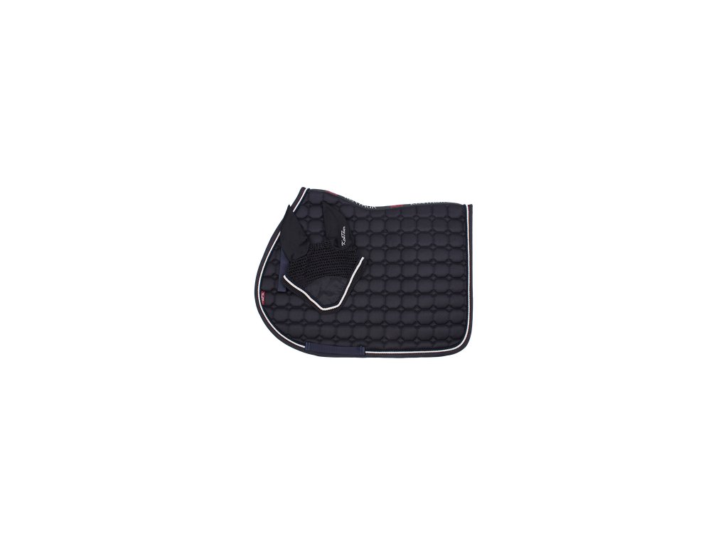 Set s dvomi ozdobnými šnúrkami. Sedí pod skokové a všestranné sedlá. Spodný materiál z hi-tech sieťoviny, ktorá výborne absorbuje a odvádza pot.