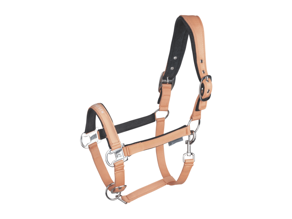 Kvalitná ohlávka s mäkkým polstrovaním v oblasti krku a nosa, ako aj na lícniciach.